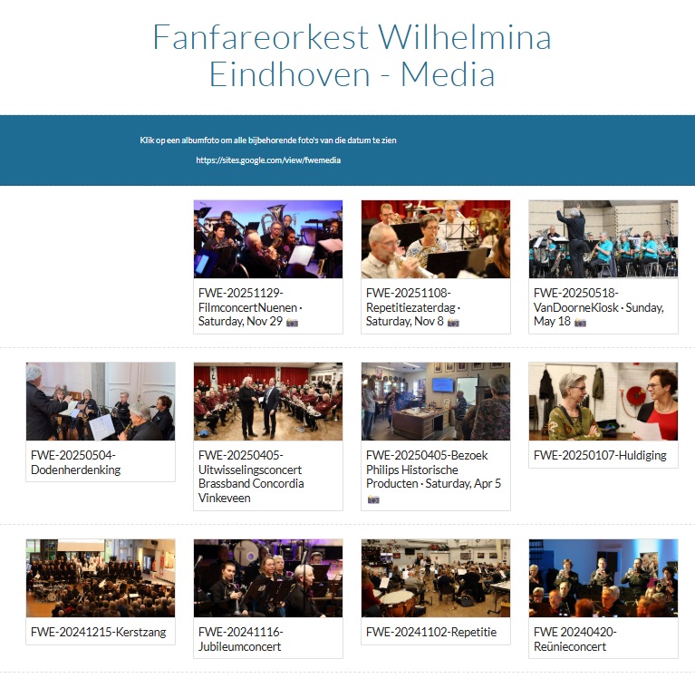 Het archief van Fanfareorkest Wilhelmina Eindhoven bestaat uit verschillende onderdelen: foto’s,  video’s en in de toekomst: bestanden. Ook het jubileumboek (100 jaar Fanfareorkest Wilhelmina Eindhoven) is onderdeel van het archief